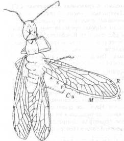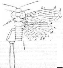 Рис. 14. Отряд Embioptera: Sheimiasojanensisиз пермских слоев Архангельской области (По Родендорфу и др.)
