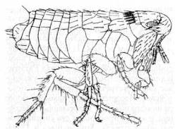 Ископаемых остатков Siphonaptera (блохи) мало, сюда относятся находки из нижнемеловых отложений Австралии и раннечетвертичнаго янтаря (рис. 19) из Прибалтики. Отсутствие крыльев и выработка адаптации к паразитическому образу жизни и кровососанию не дают возможности четко установить происхождение блох в пределах группы Mecoptera.