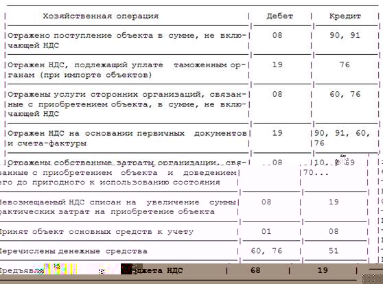 "Фактические затраты, связанные с приобретением основных средств, за исключением налога на добавленную стоимость и иных возмещаемых налогов (кроме случаев, предусмотренных законодательством Российской Федерации), отражаются по дебету счета учета капитальных вложений в корреспонденции со счетами учета расчетов.
