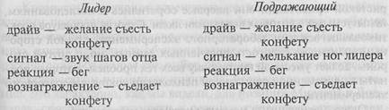Итак, в целом парадигма всех ситуаций научения, включая подражание, представляет, по Миллеру и Долларду, следующую цепочку:
