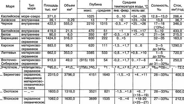 Таблица 1. Моря, омывающие территорию России