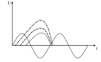 Сгруппированный электронный поток (Рис.3) возвращаясь в резонатор в момент тормозящего полупериода часть своей энергии отдаст полю резонатора, тем самым поддержит колебания в резонаторе. При этом следует помнить, что полупериод поля ускоряющий для электронов идущих от катода, одновременно будет тормозящим для электронов идущих от отражателя.