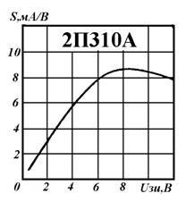 4.3 Положение рабочего участка смесителя выбираю на линейном участке зависимости крутизны транзистора от напряжения затвор-исток