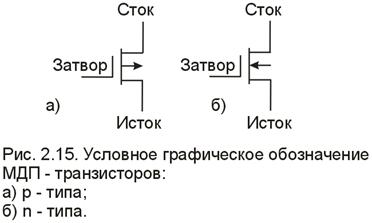МДП-транзисторы p-типа отпираются при отрицательном, а n-типа тАУ при положительном смещении напряжения затвора относительно стока.