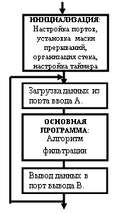 Обработка отсчетов производится программой, хранящейся в ПЗУ. Размер одного цикла программы должен быть таким, чтобы к моменту прихода следующего отсчета устройство закончило обработку предыдущего и находилось в состоянии готовности.