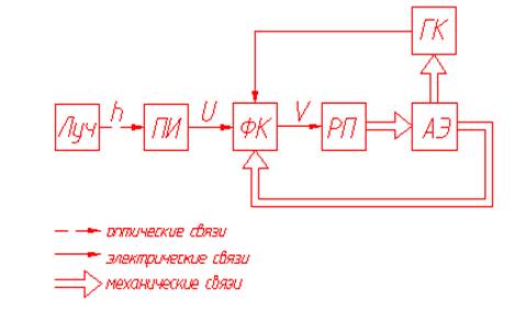 После входа ракеты в луч, расположенный на борту ракеты ПИ вырабатывает электрический сигнал U (см. рис. 4.1) пропорциональный отклонению h изделия от оси луча. В формирователе команд АЭ U корректируется, суммируется с независимыми от отклонения h программными командами и с помощью опорного сигнала Uг, вырабатываемого ГК соответственно крену ракеты g, преобразуется в одноканальный сигнал V, управляющий работой двухпозиционного релейного рулевого привода РП. Отклонение руля на угол d вызывает перемещение ракеты Р к оси луча.ВаВа