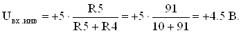 На инвертирующий вход DA1.1 подается напряжение от источника питания +5 В через делитель R4, R5 с коэффициентом деления меньше единицы. Исходя из параметров ОУ , выбираем сопротивления из ряда Е24 R5=91 кОм, R4=10 кОм.