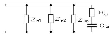 , образованным сопротивлениями активных и емкостных утечек между проводами линии, и сопротивлением нагрузки