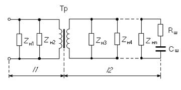 Если длина воздушной линии велика и включение шунта приводит к спаду АЧХ в области высших частот, выходящему за допустимые пределы целесообразно применить дополнительную коррекцию с помощью трансформатора Тр, разделяющего линию на 2 участка: первый тАУ длиной