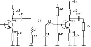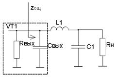 В усилительных каскадах расширение полосы пропускания связано с потерей части выходной мощности в резисторах корректирующих цепей (КЦ) либо цепей обратной связи. От выходных каскадов усилителей требуется, как правило, получение максимально возможной выходной мощности в заданной полосе частот. Из теории усилителей известно, что для выполнения указанного требования необходимо реализовать ощущаемое сопротивление нагрузки для внутреннего генератора транзистора равным постоянной величине во всем рабочем диапазоне частот. Этого можно достигнуть, включив выходную емкость транзистора в фильтр нижних частот, используемый в качестве