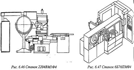 Горизонтальные многоцелевые станки 2204ВМФ4, 2204ВМ1Ф4 (рис.15) и 6Б76ПМФ4 (рис.16) содержат вынесенные инструментальные магазины. Станки производят получистовое и чистовое фрезерование плоскостей, пазов и криволинейных поверхностей концевыми, торцевыми и дисковыми фрезами, а также растачивание, сверление, зенкерование, развертывание, нарезание резьбы метчиками. Установка инструментального магазина на отдельной опоре возле станка позволяет свести к минимуму изменение его точностных параметров, увеличить жесткость станков и повысить его виброустойчивость.