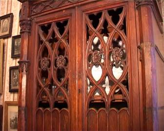 Горка-буфет изготовлена в Усолье по чертежам графа в конеце XIX века. Она выполнена в готическом стиле, верхняя часть с двумя колонками с накладной резьбой, кокошник и дверцы - пропильная плоскорельефная резьба, орнамент цветочно-листовой, навершия колонок в виде пирамид с квадратным основанием; нижняя часть с двумя сполшными дверцами, без резьбы.