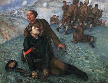 Революционную эпоху в России Петров-Водкин принимает со свойственной ему философской мудростью. Он пишет: ВлВ хаосе строительства всякому непоглощенному в личные счетытАжзвенит набатно одна струна: Будет прекрасной жизнь! Прекрасная жизнь будет!В» (Цитируется по: Каменский А. А. Романтический монтаж. М., Советский художник. 1989 г.)