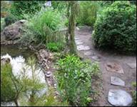 Каменные тропинки и тротуары - неотъемлемый элемент японского сада. Для устройства тропинок используют камни с одной ровной стороной (неровную зарывают в землю), длинная ось каждого камня при этом должна быть перпендикулярна к направлению тропинки