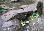 Тсукубаи - традиционный элемент японского сада, представляющий собой каменную чашу с водой в виде бочки, высотой около 20-30 см (иногда 50-60 см), в которой традиционно мыли руки при чайной церемонии. В некоторых случаях тсукубаи может находиться на уровне земли. Обычно тсукубаи располагают на низкой небольшой ровной площадке перед каменной стеной, живой изгородью или в центре сада. Около него можно установить каменный фонарь. Для тсукубаи вырывают котлован глубиной около 15 см, в центре его укладывают стальную трубу. Тсукубаи размещают на краю котлована, на 20-30 см выше поверхности земли. С каждой стороны котлована, на 5-10 см ниже высоты тсукубаи, устанавливают по камню; высота камня - около 5 см (рис. 6).