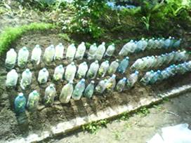 Глубина посадки колебалась в пределах 1-2 см. Длина черенков после посадки была измерена до уровня почвы. Черенки были политы водой. Чтобы создать необходимую для образования корней влажность, черенки были накрыты пластиковыми бутылками с обрезанным дном. Крышки на бутылках сохранялись. Таким образом, создавались условия для сохранения влаги и поддержания оптимальной температуры.