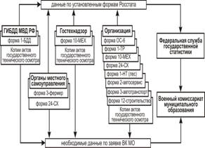 Для получения информации о наличии и техническом состоянии транспортных средств военные комиссариаты направляют запросы в Росстат, другие федеральные органы исполнительной власти, органы исполнительной власти субъектов Российской Федерации, органы местного самоуправления и организации, которые на безвозмездной основе обязаны представить необходимые учетные данные