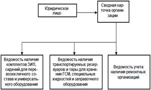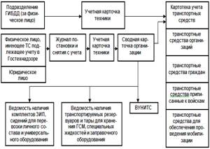 В целях организации качественного учета в военном комиссариате необходимо вести документы, которые определяет Инструкция по учету в вооруженных силах Российской Федерации техники, гужевого и вьючного транспорта организаций и граждан, имущества организаций и ремонтных организаций [2]. Структурная схема учета транспортных средств в военных комиссариатах приведена на рис.2 и 3.