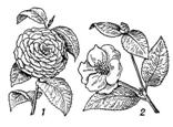 Камелия(Camellia) - род вечнозелёных деревьев или кустарников семейства чайных. Листья очередные, простые, на коротких черешках. Цветки одиночные, крупные, белые, красные. Лепестков 5 или больше, тычинок много. Камелия японская (С. japonica) и её гибридные формы симеют простые и махровые цветки без запаха. Из листьев камелии сасанква, или эвгенольной (С. sasanqua), тАФ из Японии и Китая тАФ получают эфирное масло, на 97% состоящее из эвгенола тАФ ценного дезинфицирующего средства, используемого в зубоврачебной практике и др. [4]