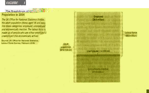 A person is considered employed if he or she spent some of the previous week working at a paid job.Ва A person is unemployed if he or she fits the ILO definition of an unemployed person. A person who fits neither of the first two categories, such as a full-time student, homemaker or retiree, is not in the labour force (or, to use ILO terminology, economically inactive). Figure 1 shows this breakdown for the UK in the autumn of 2004.