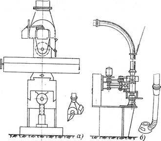 Для захвата пыли в месте ее образования важную роль играет конструкция пылеприемников. На рисунке 1 показаны пылеприемники, устанавливаемые на фрезерном и сверлильном станках. Выбрасываемый воздух должен очищаться от пыли в пылеотделителях (циклонах, электроциклонах и др.).