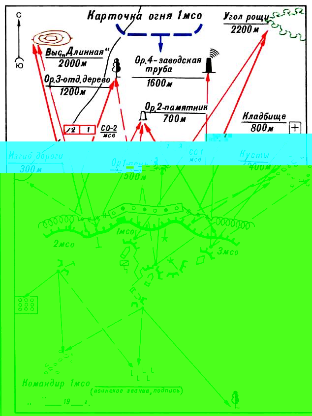 Таким образом, система огня в обороне заключается в организованном размещении и умелом использовании огневых средств, создании зон сплошного огня всех видов перед передним краем, на флангах и в глубине обороны для уничтожения в первую очередь танков и других бронированных машин, а также в быстром сосредоточении огня на любом угрожаемом направлении или участке, т,.е. она должна обеспечить возможность ведения действительного фронтального, флангового и перекрестного огня.