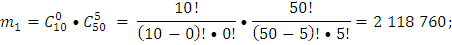 Задача 1. В партии из 60 изделий 10 тАУ бракованных. Определить вероятность того, что среди выбранных наудачу для проверки 5 изделий окажутся бракованными: