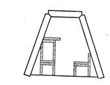 Значительный эффект достигается при установке и закреплении в оснастке пустотелых панелей для простейших закладных элементов (треугольных призм), в результате чего после распалубки в нижней части панелей образуются треугольные вырезы. В процессе монтажа они позволяют плоской панели принять в рабочем положении трапециевидную форму (рисунок 9). Особенностями данной конструкции являются сохранение площади рабочей арматуры панели и надёжность соединения арматуры панели и надёжность соединения элемента покрытия со стенами, не требующая дополнительного крепления между собой. Трудоёмкость возведения убежищ из указанных конструкций практически не отличается от возведения убежищ из объёмных элементов коллекторов и даже имеет ряд преимуществ: при устройстве котлована не требуется тщательная планировка всего дна, для монтажа может быть использован автокран небольшой грузоподъёмности, конструкции удобны для транспортирования.