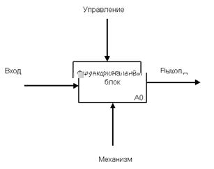 На российском рынке используется ряд инструментальных средств для моделирования, анализа и оценки бизнес-процессов, охватывающий все этапы создания систем управления. Успех проекта по созданию, поддержанию и развитию системы управления предприятия во многом зависит от выбора тех или иных инструментальных средств. Наиболее приемлемым способом описания процессов является их графическое представление. К таким комплексным средствам относится методология ARIS Toolset, предназначенных для проектирования и управления предприятием, моделирования, документирования, анализа и оценки бизнес-процессов, разработки, внедрения информационной системы [8,9,19]. Инструментальное средство АRIS Toolset содержит более 80 моделей и методов для описания бизнес-процесса. В 70-х годах при реализации проектов по заказам ВВС США была разработана программа комплексной компьютерной поддержки производства (ICAM тАУ Integrated Computer-Aided Manufacturing), и методология функционального моделирования IDEF. В 1993 году она была принята в качестве федерального стандарта в США, а в 2000 году тАУ в качестве стандарта Российской Федерации. Методология содержит 11 стандартов от IDEF0 до IDEF11 [8,9,19]. Методология IDEF0 поддерживается компьютерными программами. Применение компьютерных программ на стадии описания процессов позволяет не только повысить эффективность решения этой задачи, но также использовать эти модели на стадии менеджмента процессов, интегрируя их в корпоративную информационную систему организации. Функциональная модель IDEF0 (рис.1.5) состоит из двух типов элементов тАУ функциональных блоков и дуг.