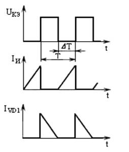 Ключевой преобразователь представляет собой импульсный генератор, работающий в режиме самовозбуждения. На рисунке 1.3 приведены временные диаграммы преобразователя [2].