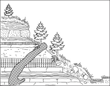 Обнажение горных пород тАУ это выход пород на земную поверхность в оврагах, долинах рек, карьерах, шахтных выработках, на склонах гор. Породы в обнажении обычно скрыты тонким слоем осыпи, поэтому прежде всего его очищают от лишнего материала. При изучении обнажения обращают внимание на то, какими породами оно сложено, каковы состав и мощность этих пород, порядок их залегания (рис. 17). Обнажение тщательно описывают, зарисовывают или фотографируют. Из каждого пласта берут пробы для дальнейшего изучения в лаборатории. Лабораторный анализ проб необходим для того, чтобы определить химический состав пород, их происхождение и возраст.