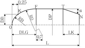 RB=1,18 мм.; DB=1,2мм.; DP= 5,55 мм.;