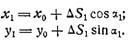 Таким образом, текущие координаты движущейся машины равны алгебраической сумме координат начальной точки и приращений Ах и Ау, вычисленных аппаратурой в процессе движения машины от начальной точки до данной.
