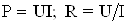 Приклади опосередкованих вимiрювань: визначення потужностi P або активного опору R резистора за результатами вимiрювання спаду напруги U на резисторi i струму I, який проходить через нього: