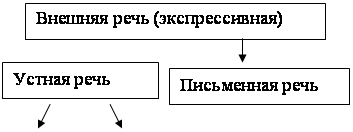 Внешняя речь (экспрессивная) тАУ имеет звуковое выражение. Включает следующие виды:
