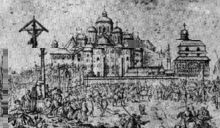 У 1697 роцi велика пожежа знищила дерев'янi будiвлi Софiйського монастиря.