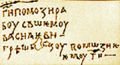 РЖ, незважаючи на широке розповсюдження кирилицi, створеноi Кирилом та Мефодiiм та використовуваноi для церковних текстiв, знайденi численнi написи глаголицею, свiдчать про те, що загал ще довгий час не сприймав штучно вигадану писемнiсть.