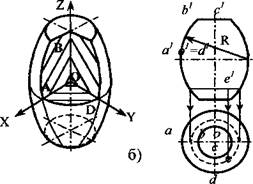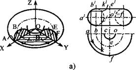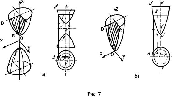 5.ВаВаВа Параболоид образуют вращением параболы ОD вокруг ее фокальной оси ОF (рис. 7, б). Пл. ХОZ. и YОZ пересекают эту поверхность по параболам ОD и ОЕ, а пл. ХОY дает в сечении точку О.