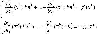 Разложим функции fi из системы (5.2) в ряд Тейлора в окрестности точки хк до линейных составляющих.