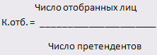 Работники отделов кадров анализируют эффективность отбора, используя расчетный коэффициент, так называемый коэффициент отбора, который определяется следующим образом: