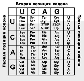 Генетический код - свойственная живым организмам единая система записи наследственной информации в молекулах нуклеиновых кислот в виде последовательности нуклеотидов. Каждый нуклеотид обозначается заглавной буквой, с которой начинается название азотистого основания, входящего в его состав: - А (A) аденин; - Г (G) гуанин; - Ц (C) цитозин; - Т (T) тимин (в ДНК) или У (U) урацил (в мРНК).