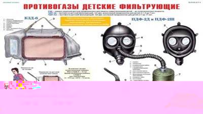 Для детей тАУ ДП-6, ДП-6м, ПДФ-7, ПДФ-2Д, ПДФ-2Ш, а также камера защитная детская КДЗ-6. Следует иметь в виду, что фильтрующие противогазы от окиси углерода не защищают, поэтому для защиты от окиси углерода используют дополнительный патрон, который состоит из гопкалита, осушителя, наружной горловины для навинчивания соединительной трубки, внутренней горловины для присоединения к противогазной коробке.