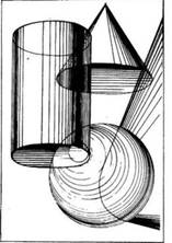 Третья группа включает все тела вращения и формы, образованные криволинейными поверхностями, тАФ шар, цилиндр, конус, формы с параболическими и гиперболическими поверхностями и т.д. (рис.Ю).