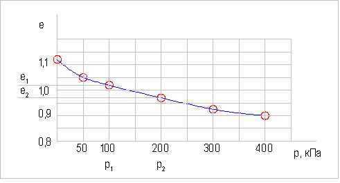 e1 и e2 тАУ коэффициенты пористости соответствующие принятым давлениям