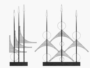 Требование напряженности материала высотных объектов, которое обязательно следует принимать в расчет для придания объекту устойчивости, определяет необходимость уменьшения его массы по высоте. Этого эффекта можно достичь либо незначительным отклонением от вертикали внешних плоскостей объекта, либо конусностью поверхностей, либо ступенчатостью объемов с их закономерным уменьшением по высоте.