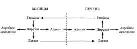 Из клеток, в которых происходит гликолиз, образующаяся молочная кислота поступает в кровь и улавливается в основном печенью, где и превращается в пируват. Пируват в печени частично окисляется, частично превращается в глюкозу тАФ цикл Кори, или глюкозолактатпый цикл: