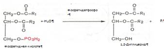 Ацилирование глицерол-3-фосфата протекает последовательно, т.е. в 2 этапа. Сначала глицерол-3-фосфат-ацилтрансфераза катализирует образование лизофосфатидата. Далее фосфатидная кислота гидролизуется фосфатидат-фосфогидролазой до 1,2-диглицерида (1,2-диацилглицерола):