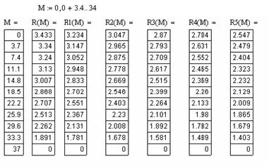 Для того, чтобы показать зависимость радиуса соты от М (количества активных пользователей) при принятых значениях Eb/N0 и запаса по мощности используем (60) для записи