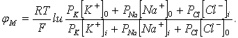 Это уравнение называется уравнением стационарного потенциала Гольдмана - Ходжкина - Катца.