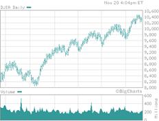 DJIA тАФ индекс Доу Джонса (Dow Jones Industrial Average). Появился в 1897 г., в нынешнем виде рассчитывается с 1928 г. Несмотря на название ВлпромышленныйВ», в его состав на данный момент входят три компании сферы услуг и три банка. Рассчитывается как среднее арифметическое цен акций 30 компаний, входящих в расчетную базу индекса. В качестве делителя используется не число компаний в выборке, т. е. 30, а коэффициент, учитывающий многократное дробление акций (сплит) эмитентами, много раз происходившее с 1928 г. Рассчитываются также транспортный индекс Доу Джонса (20 акций), коммунальный индекс (15 акций), композитный индекс Доу Джонса (65 акций) и др.